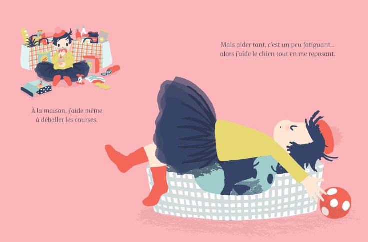 « Moi, c’est Suzie. Ce que j’aime, c’est aider. En fait, je suis la meilleure aideuse du monde. Je commence la journée en aidant tout le monde à se réveiller et à sortir du lit. Parfois c’est un peu compliqué pour papa et maman, alors je dois les aider très fort ! »…