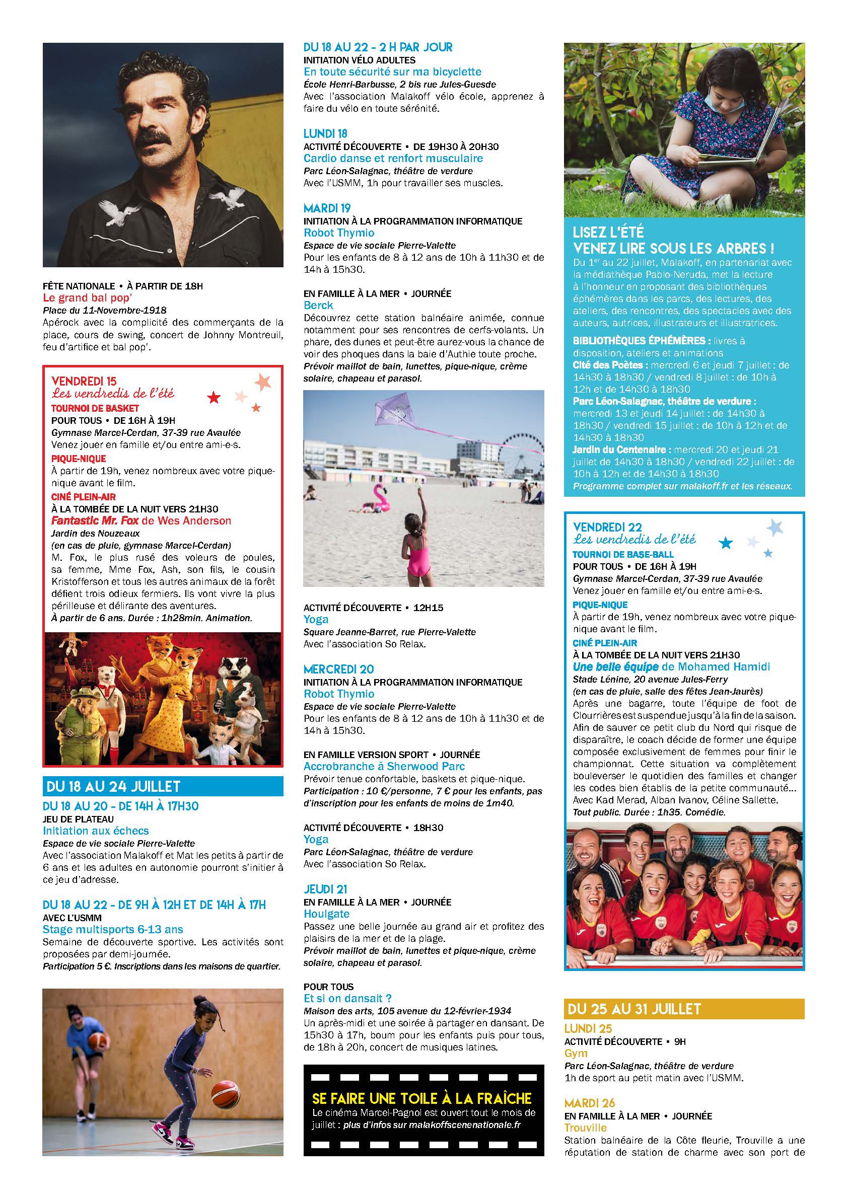 - 13 juillet de 15h à 16h : atelier de création autour de Mon oiseau… avec Christian Demilly au parc Léon-Salagnac (médiathèque Pablo-Neruda en cas de pluie)