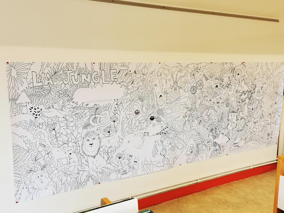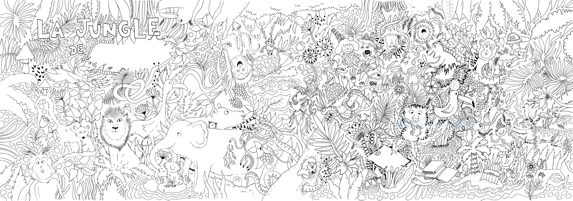 Aussi foisonnante de détails, fourmillante d’assemblages, généreuse, dense et minutieuse que l’album… On vous présente la frise géante à colorier tirée du Livre de ma jungle d’Alice de Nussy et d’Estelle Billon-Spagnol. Conçu pour les bibliothèques, les médiathèques, les librairies et les écoles, ce coloriage d’1 m sur 3 m permettra aux animateurs de créer un chouette atelier de création.