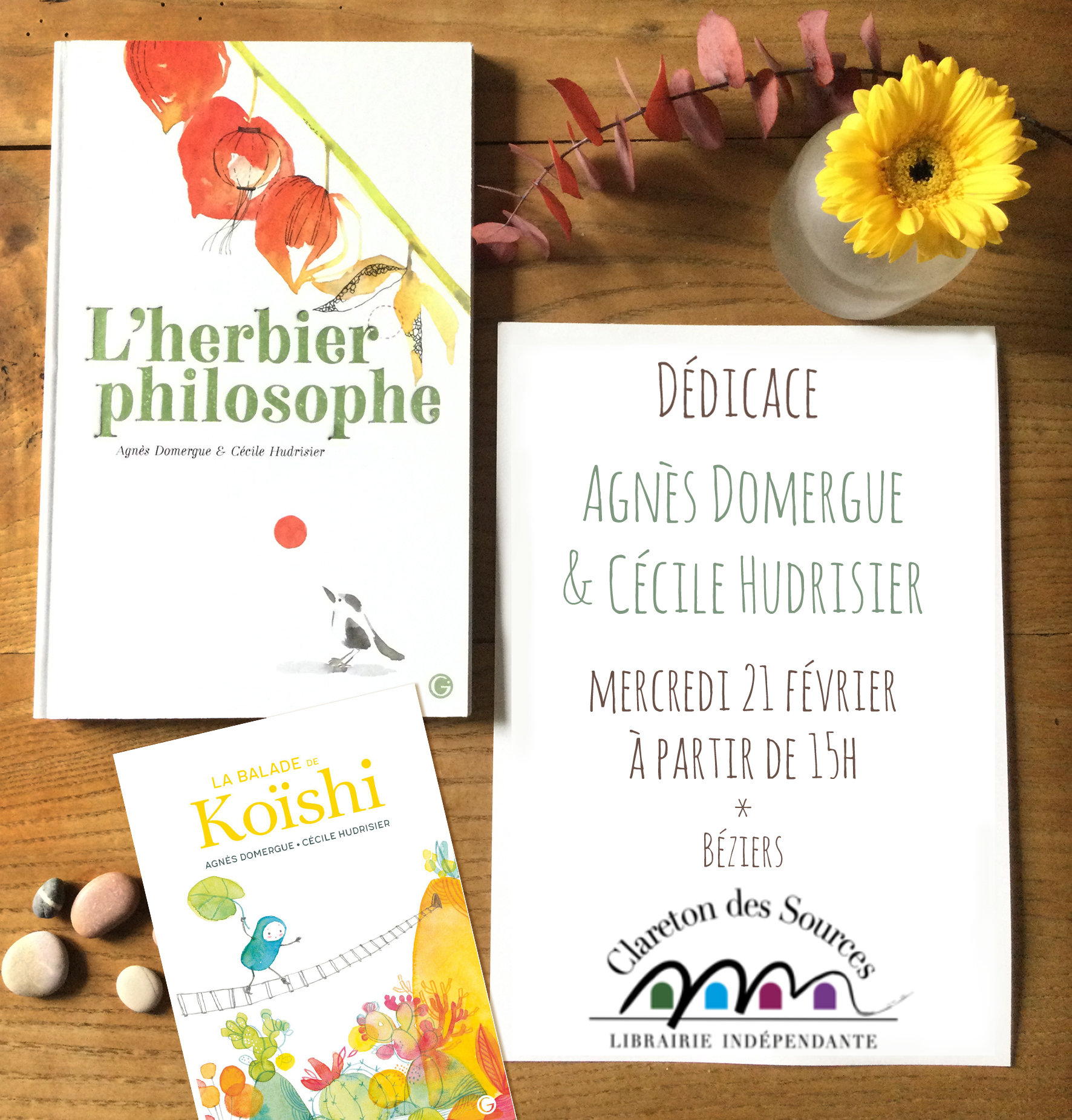 La librairie Clareton des Sources est heureuse de recevoir en dédicace Agnès Domergue et Cécile Hudrisier, autrice et illustratrice de L’Herbier philosophe et La balade de Koishi, parus aux éditions Grasset-Jeunesse !