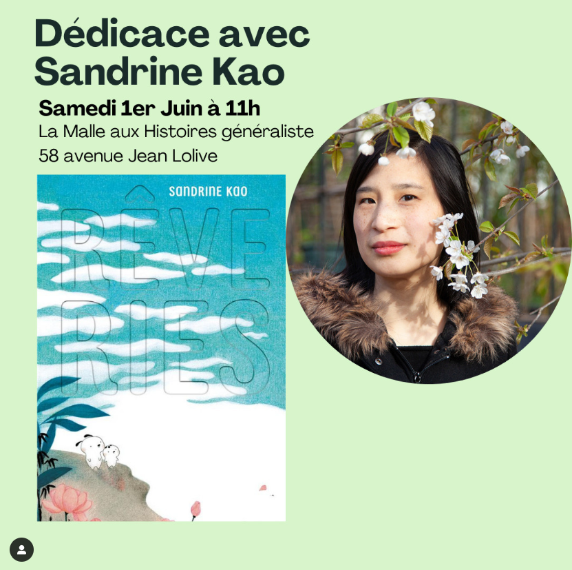 À l’occasion de la parution de Rêveries de Sandrine Kao, la librairie généraliste La Malle aux histoire organise une superbe séance de dédicace, le samedi 1er juin à 11h dans son établissement.
