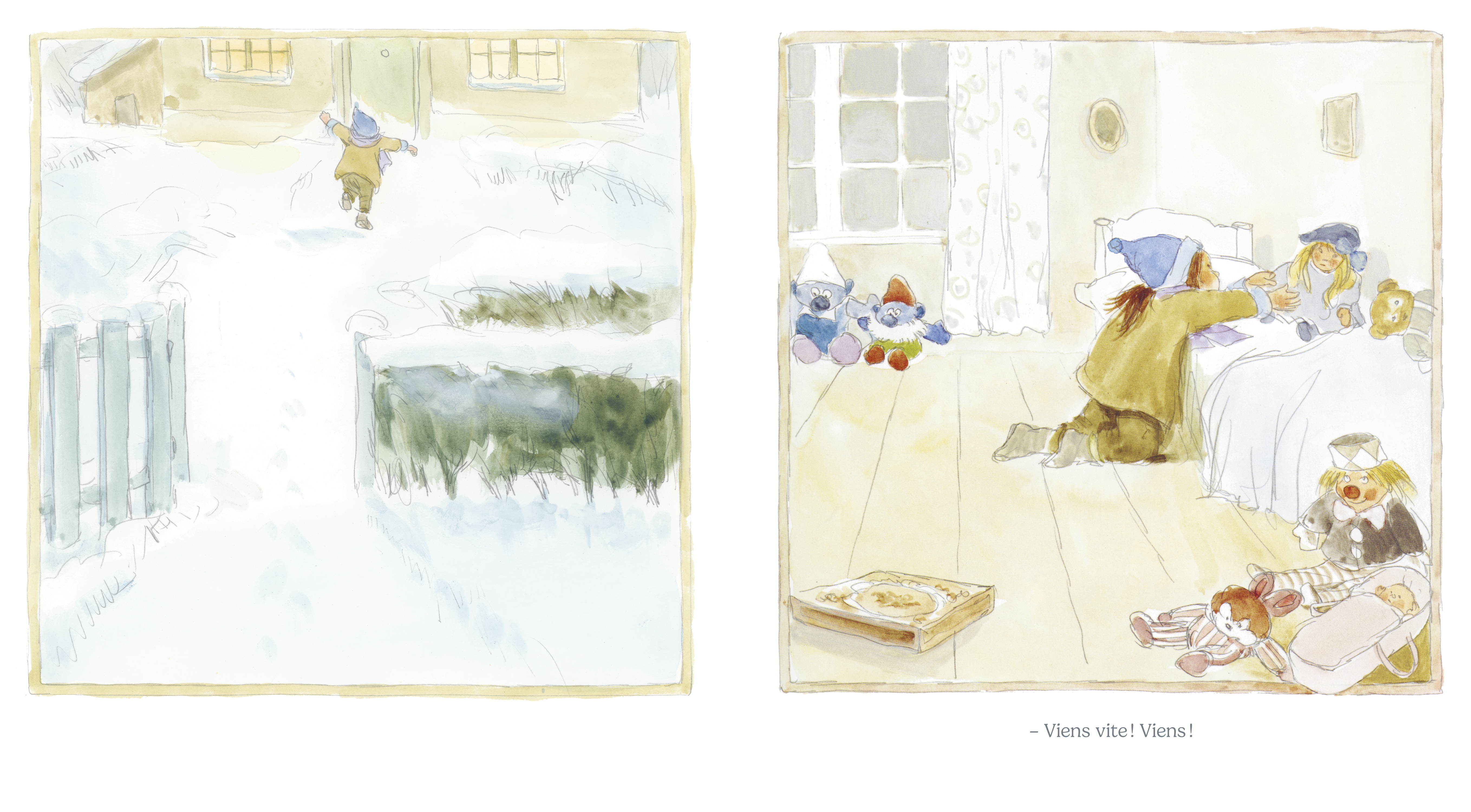 ON EN PARLE ! ● Le Suricate : « Les dessins aplatis de Gabrielle Vincent, comme s’ils étaient collés sur le même plan, sont comme les traces d’une autre époque ressurgissant au XXIème siècle. Ils font merveille ici et permettent de créer beaucoup de tendresse et d’émotions à la lecture en inversant l’histoire connue pour parler d’échange, d’innocence enfantine, de partage, et de connexion humaine. 4.5/5. » ● Christian Poslaniec : « C’est tout simple, tendre et véritablement dans l’esprit de Noël et/ou de la fraternité. » ● @naellebooks : « 🎅🏻Plein de tendresse et de poésie, cette jolie histoire force le respect en terme de générosité, et instille des petites bribes de bienveillance et d’empathie dans la tête de nos petits loulous ❄️ » ● @mamzellepotter : « Pour moi, c’est une histoire de Noël classique tout simplement qui a le charme du vintage ! » ● Bruxelles Culture : « La présente réédition s’adresse aux enfants de la nouvelle génération, toujours amoureux de belles histoires et de messages porteurs d’espoir. » ● Librairies Les Sandales d’Empédocle : « Des pages encadrées, le sentiment d’être dans de la ouate, d’une monde de douceur ; des phrases courtes et une histoire qui va faire battre votre petit coeur à l’unisson de l’aventure. Et si le plus beau cadeau de Noël était l’attention qu’on porte aux autres ? Un océan de douceur dans un monde de brutes. » ● @troispetitstoursdepage : « 🎅🏻 coup de 💛 pour cet album un peu différent.🎅🏻 les illustrations sont absolument superbes, tendres et douces. 🎅🏻 l’histoire porte un joli message de générosité . Une belle reedition pour cet album qui fête ses 30 ans. » ● À vos marques tapage : « Une pure merveille d’humour et de tendresse ! A partir de 3 ans. » ● Opalivres : « Une histoire de Noël toute douce à une époque où les enfants sont parfois envahis par les cadeaux qu’ils oublient rapidement. On retrouve la douceur des aquarelles de Gabrielle Vincent, connue grâce à la série Ernest et Célestine. » ● @delartetdeshistoires : « Un album qui a tout juste 30 ans, réédité cette année pour notre plus grand bonheur. Un album ou pour une fois, le Père Noël n’arrive pas les bras chargés de cadeaux, mais en reçoit, parce que c’est bien ça le véritable esprit de Noël, le partage et le rêve. Un album plein de magie, à savourer devant un bon feu de cheminée, à l’ombre du sapin. » ● Cathobel : « Toute la sensibilité de Gabrielle Vincent (la « maman » d’Ernest et Célestine) se retrouve dans ce récit empreint de douceur et d’émerveillement. Publié en 1994, Mon petit Père Noël est donc réédité pour les enfants de la nouvelle génération, toujours amoureux de belles histoires et de messages d’espoir. » ● Le Temps : « La magie de Noël opère déjà dans les livres pour enfants. » ● News Day FR / Huffington Post : « Délicatement illustré au crayon et à l’aquarelle, ce conte de Noël plein de tendresse inverse les rôles pour aborder avec les enfants les notions de partage et de générosité. » ● La Dépêche Louvriers : « Un livre tendre et délicat pour évoquer la solitude et la générosité. » ● NVL la revue : « C’est une belle philosophie qui permet de questionner la notion du don. CL » ● Les Demoiselles de Chatillon : « Un superbe album, plein de sensibilité, pour entrer dans la magie de Noël. À découvrir dès 3 ans. » ● @librairie_au_ptit_prince : « Encore quelques chouettes albums de Noël ! » ● @lecartabledemrchristophe : « 💓🎁 Un album empreint de poésie qui célèbre la générosité et l’humanité, parfait pour illuminer les cœurs en cette période de fêtes. » ● @isabellepetitesmadeleines : « Dans cette nouvelle édition au beau dos toilé rouge et à la dorure à chaud, on retrouve le ton affectueux, le bonheur de la rencontre et de l’attention à l’autre, signature de cette grande dame de la littérature jeunesse. Un parfait album pour s’émerveiller de la gentillesse en période de fêtes ! » ● Le Temps, Entre-Temps : « Chaque réédition d’un album de Gabrielle Vincent est un bonheur. » ● Radio Triage FM 94.4 – Couleur papier : « C’est un album qui inverse l’ordre établi de la magie de Noël, peut-être pour éveiller la sensibilité et l’altruisme chez les plus jeunes. » ● La revue des livres pour enfants : « Dans les albums de jeunesse, le Père Noël est décidément une figure qui permet aux auteurs de donner vie à certains sentiments: ici le lien qui se crée par le don et le contre-don. É.B. » ● Livrjeun : « L’album est surprenant, aux antipodes des histoires de Noël habituelles. Il est plein de sensibilité et de douceur. Les illustrations tiennent une place très importante dans cet album. Les dessins à l’aquarelle occupent pratiquement toute la page et le texte tient en une seule phrase en bas de page. Les tons pastel de ces illustrations renforcent le sentiment de tendresse de cet album. Mais attention, l’originalité de cette histoire peut décevoir les petits, car elle ne représente pas le Père Noël qui les fait rêver. – Cécile CHAUVIRÉ » ● Lietje : « Les dessins sont merveilleux de délicatesse, les personnages sont très expressifs, la poupée également, et le décor hivernal est esquissé à la perfection. Enfin, cette histoire de Père Noël avec « rien » fait un contraste heureux avec cette période de trop de tout. Un lien, la promesse d’une attente comblée et c’est tout. Merveilleux, non ? Mais en réalité, ce n’est pas tout : il reste un très joli livre à ouvrir tous les 24 décembre. » ● Télérama : « Les plus jeunes musarderont avec plaisir dans cet épais volume, mais il pourront aussi développer ce muscle oculaire qui permet de garder l’œil vague pendant des heures, grâce à la lecture de Mon pet