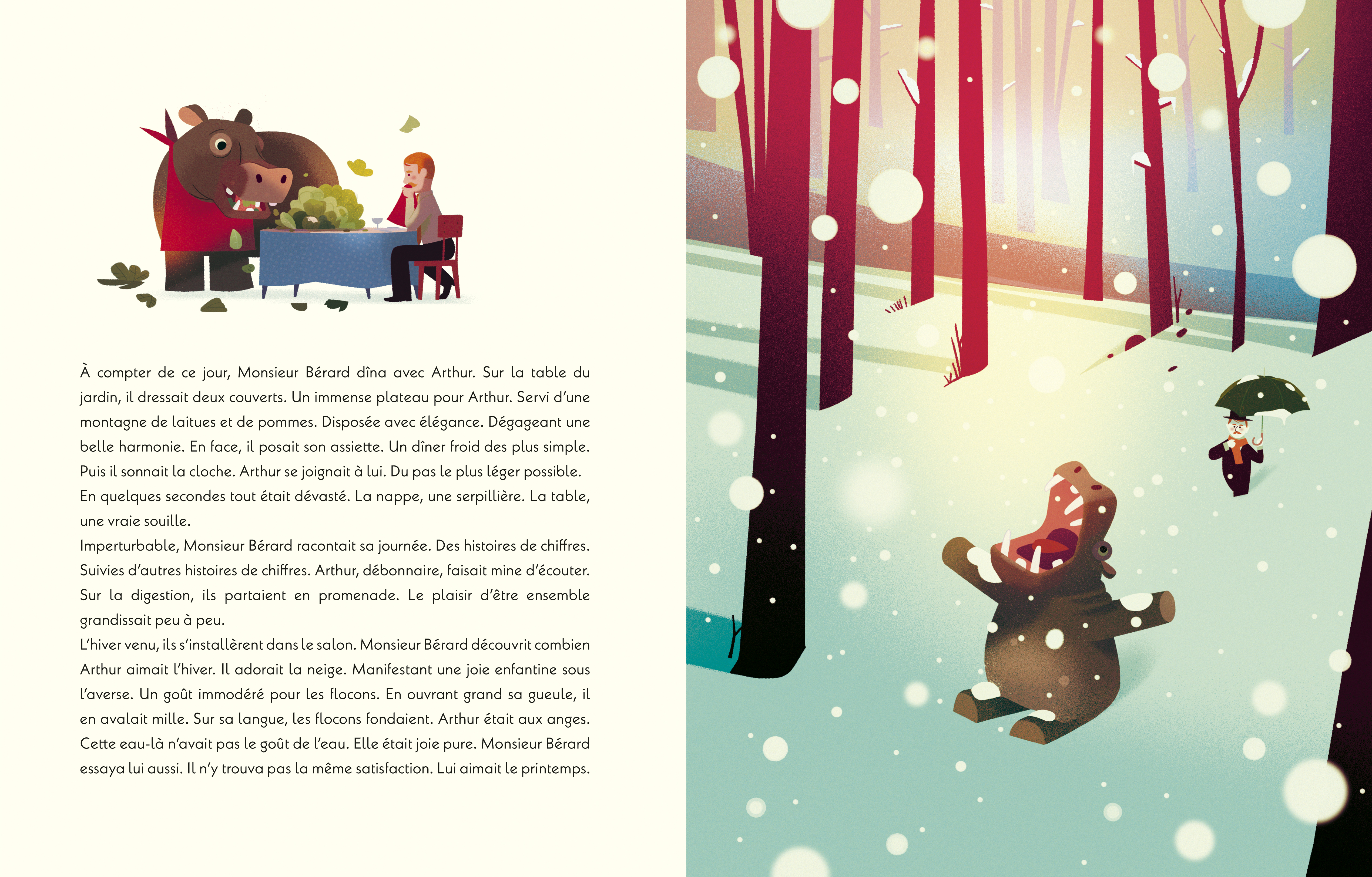 Ou comment évoluer de l’ordre rigide à la spontanéité pure ! Ce récit dépeint avec finesse la transformation de Monsieur Bérard, un homme méticuleux et ordonné, confronté à l’arrivée inattendue dans sa vie d’un hippopotame nommé Arthur.