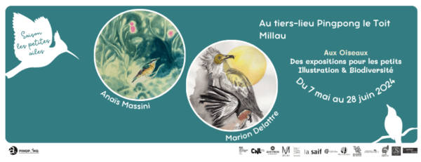 Du 7 mai au 28 juin 2024, le tiers lieu Pingpong le Toit à Millau accueille l’exposition "Aux Oiseaux" d’Anaïs Massini et Marion Delattre. Cet événement pour les petits, s’inscrit dans le cadre de la saison culturelle Les petites ailes dédiée à l’ornithologie et à l’illustration jeunesse pour les enfants.